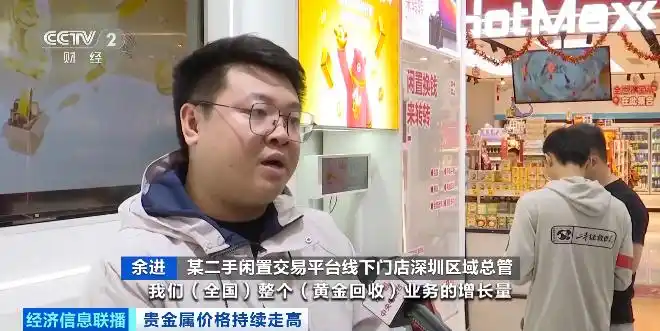 最近金價(jià)上漲迅猛,不斷刷新紀(jì)錄。不少手里有黃金的消費(fèi)者選擇把黃金變現(xiàn),這讓黃金回收門店業(yè)務(wù)量大增。有門店工作人員介紹,最近黃金回收量上升了50%左右,以散客為主。周末生意最好,一天回收量能達(dá)到幾十公斤。黃金回收業(yè)務(wù)也吸引了不少二手交易平臺(tái)加入。某二手閑置交易平臺(tái)線下門店負(fù)責(zé)人介紹,2025年下半年至今,黃金回收業(yè)務(wù)同比增長(zhǎng)了150%,門店的咨詢量增長(zhǎng)了120%。