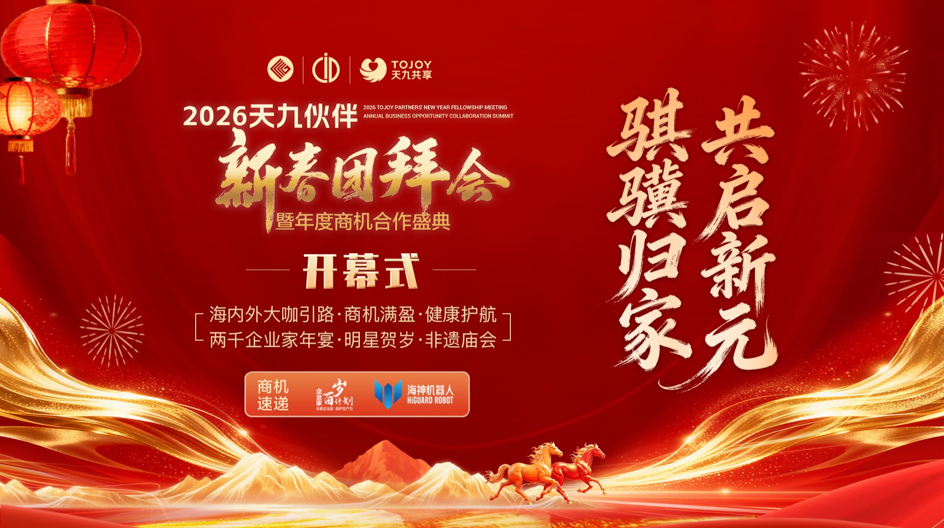 駿馬踏春迎新歲,暖心團(tuán)圓正當(dāng)時(shí)!今日8:30,2026天九伙伴新春團(tuán)拜會(huì)暨年度商機(jī)合作盛典將在北京溫馨啟幕,2000余位企業(yè)家“家人”齊聚一堂,圍爐敘舊、共享機(jī)遇、共迎馬年!奧地利前總理維爾納·法依曼亦將親臨現(xiàn)場(chǎng),與各界嘉賓共賀新春,同時(shí)獻(xiàn)上企業(yè)出海與全球化布局的最新洞察。天九企服董事長(zhǎng)兼CEO戈峻則將結(jié)合多年積淀的全球名企管理智慧與中國(guó)市場(chǎng)本土實(shí)踐,前瞻2026年度產(chǎn)業(yè)風(fēng)口,為民企轉(zhuǎn)型、增長(zhǎng)建言獻(xiàn)策。覆蓋人工智能、低空經(jīng)濟(jì)、大消費(fèi)等風(fēng)口賽道的30+前沿商機(jī),是開(kāi)幕式的重頭戲。它們將作為“開(kāi)年利是”,助力企業(yè)家高效開(kāi)局,更有劉媛媛、陳紅、付笛聲、任靜等明星用經(jīng)典旋律溫暖相伴,讓這場(chǎng)團(tuán)圓更有溫度、更添喜氣!>>> 立即觀看老板云直播,共赴新春之約