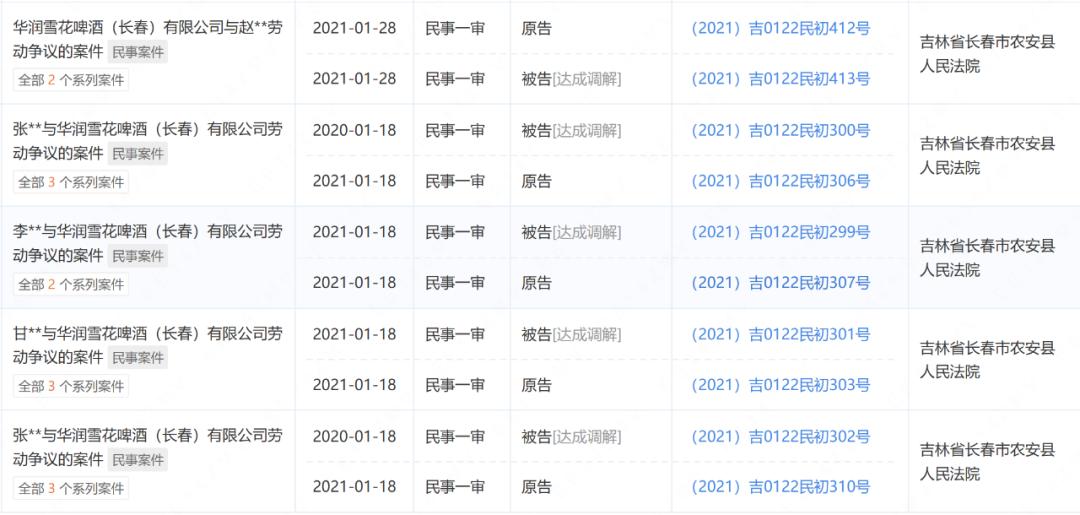 涉雪花長(zhǎng)春公司的勞動(dòng)糾紛不少已達(dá)成調(diào)解