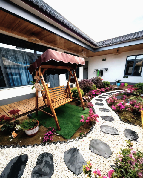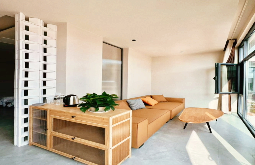 該民宿距離劉家灣趕海園僅500米,256平方米的庭院里打造了4間適合不同家庭的客房。這里主打清雅的田園風裝修,臨近海鮮市場和超市,采購十分方便。住客不僅能在院內體驗自助燒烤的樂趣,還能使用自助廚房等設施,既有旅居的愜意,又充滿煙火氣息,輕松滿足游客的休閑旅居需求。
