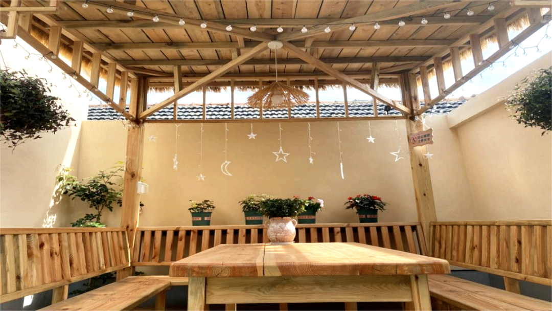 距離劉家灣趕海園500米,庭院面積220平方米,4間客房風格各不相同,院內純手工實木涼亭是其獨特標識,還有廚房、餐廳等配套設施。客房都配備了品牌家電。在這里可以靜坐涼亭品茗,感受海風拂面的閑適,沉浸式體驗海邊小院的治愈氛圍。