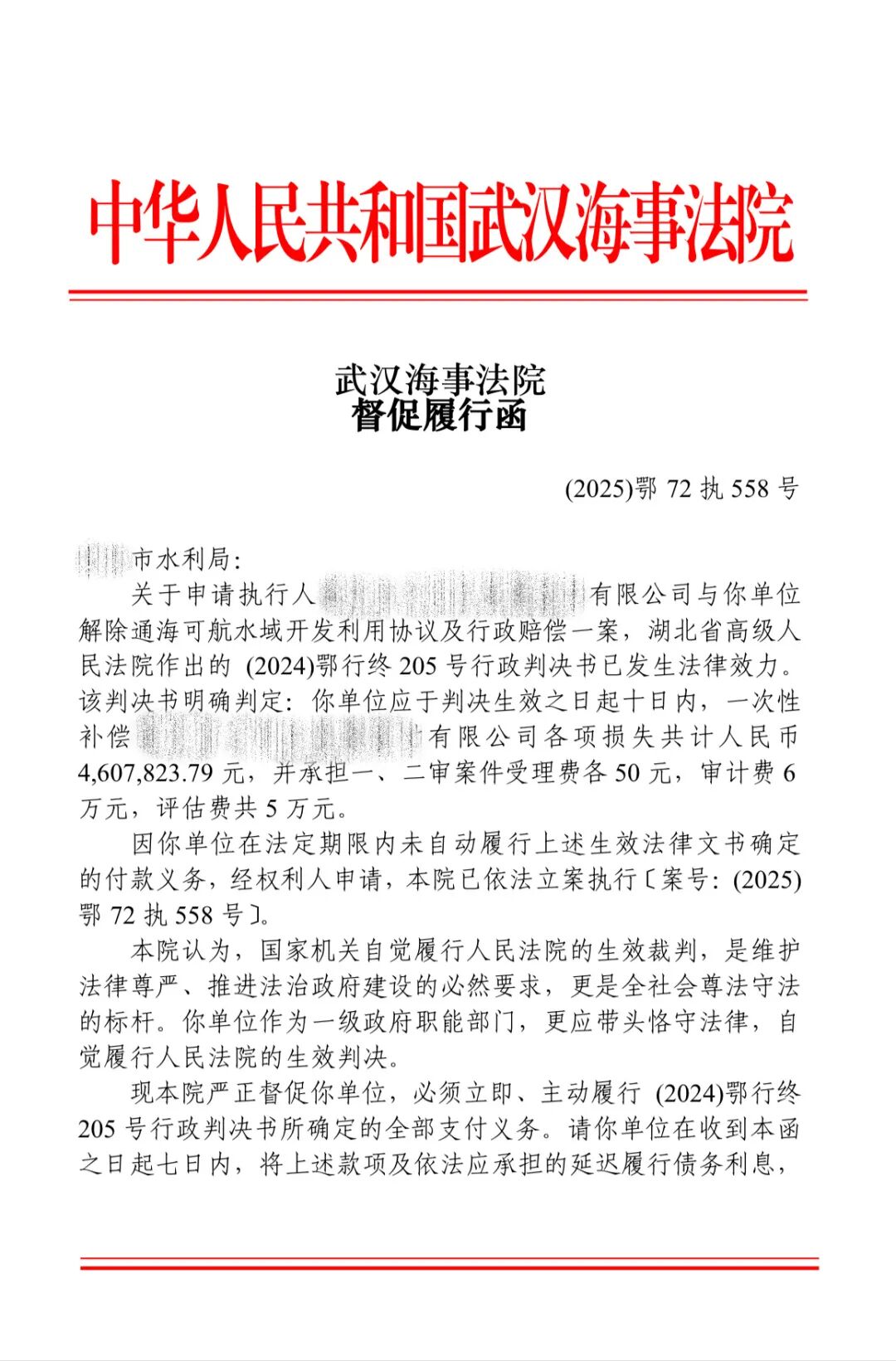 重慶某公司與某地水利局簽訂《河道砂石開采權(quán)有償出讓合同》后,因政策調(diào)整及行政機(jī)關(guān)行使行政優(yōu)益權(quán)單方解除引發(fā)糾紛。該公司訴至武漢海事法院,經(jīng)湖北省高級(jí)人民法院終審判決,水利局需補(bǔ)償460余萬元。案件進(jìn)入執(zhí)行程序后,如何實(shí)現(xiàn)案結(jié)事了、政企雙贏,成為對(duì)司法智慧的考驗(yàn)。