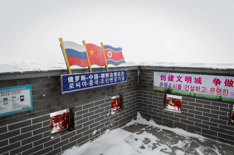 遠(yuǎn)眺被白雪覆蓋的中、俄、朝三國交界地帶,