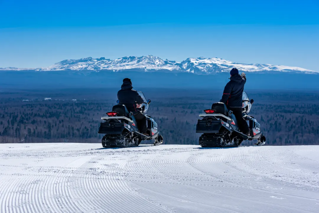 乘坐越野車沖上冰雪覆蓋的盤山路,