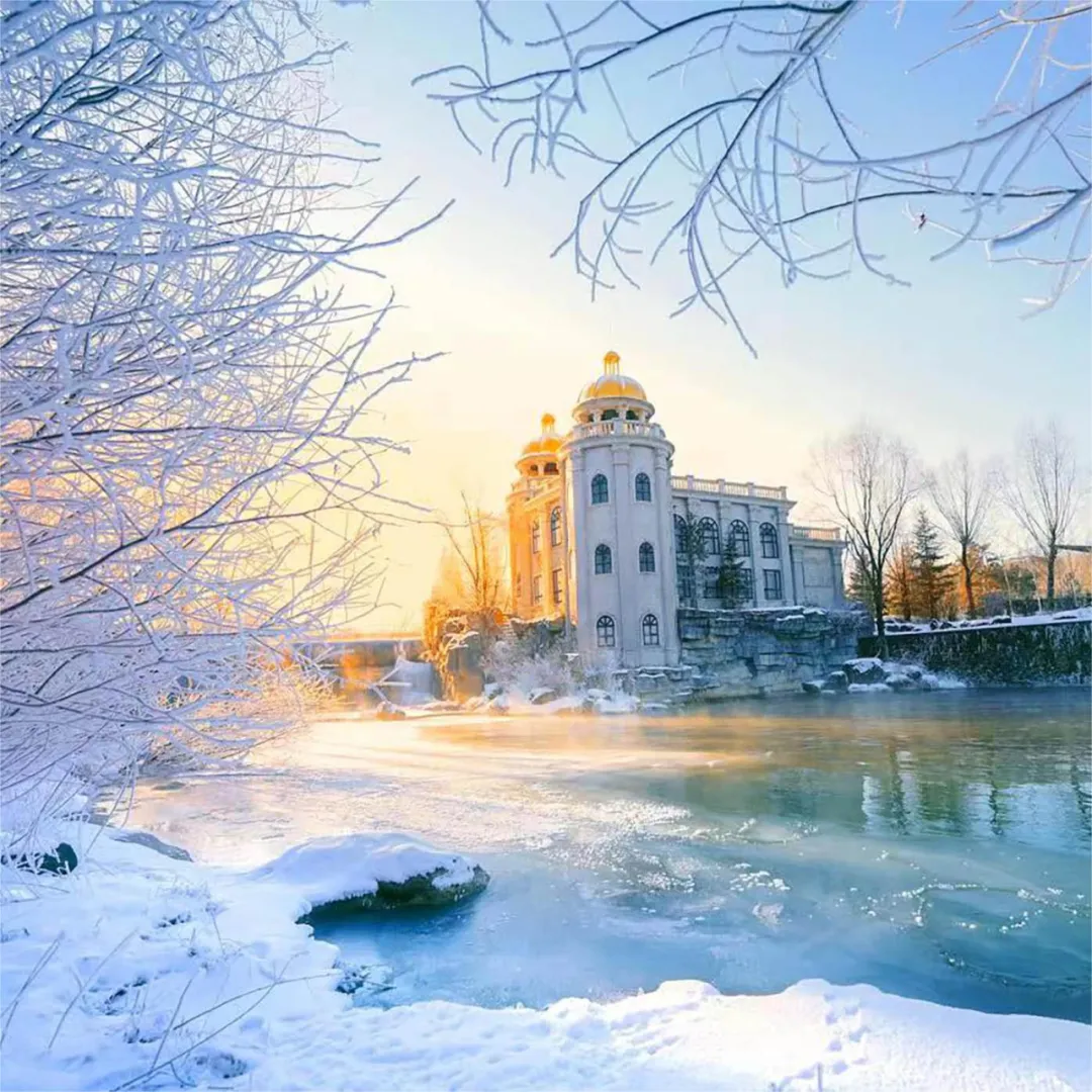 與周邊的雪松冰掛構(gòu)成一幅絕美畫卷。