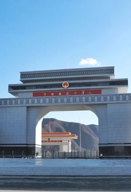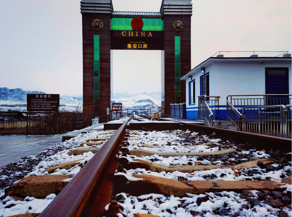 國門與界碑在冰雪中莊嚴(yán)矗立。