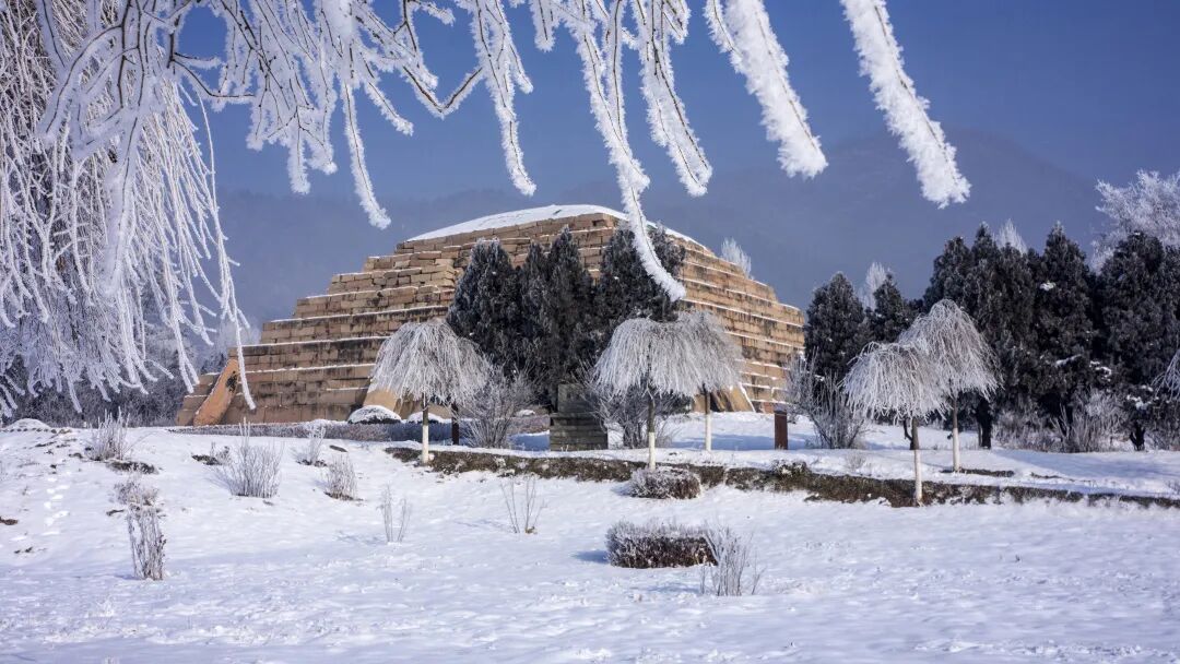 有著“東方金字塔”之稱的將軍墳,其幾何線條在雪中愈發(fā)清晰。