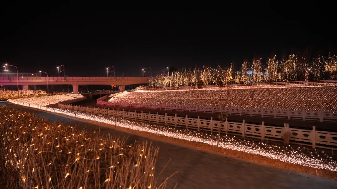 活動當晚,80萬顆LED燈珠組成的8米高光影裝置綻放光芒,將夜空暈染成奇幻畫卷。光影瀑布似銀河傾瀉,歐洲網紅天使燈陣如夢似幻,千米光影堤岸璀璨浩瀚……多組藝術裝置共同構建出沉浸式的童話秘境。市民漫步其間,每一步都能邂逅不同景致,每個角落都藏著驚喜,隨手一拍便是絕美的光影照片。