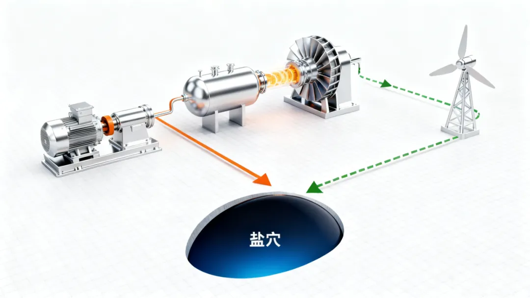 借助富余電能將空氣壓縮存儲(chǔ)于地下鹽穴