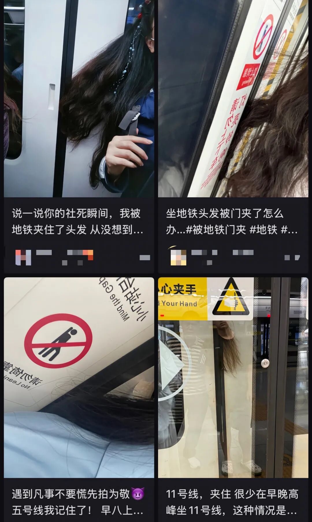 從2023年開始,小紅書上出現(xiàn)了很多分享“被地鐵夾住”親身經(jīng)歷的帖子。各一線城市早晚高峰的地鐵門就像一張深淵巨口,每個(gè)月每周都在吞噬那些鈴響時(shí)沒完全擠進(jìn)長方形車廂的邊角,從沒停過。