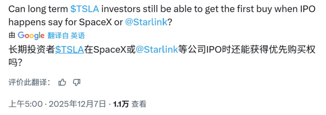 當(dāng)然,不少網(wǎng)友在對(duì)SpaceX表示贊嘆與期待的同時(shí),也提出疑問(wèn):持有特斯拉股票的股民是否能優(yōu)先購(gòu)買SpaceX股票?