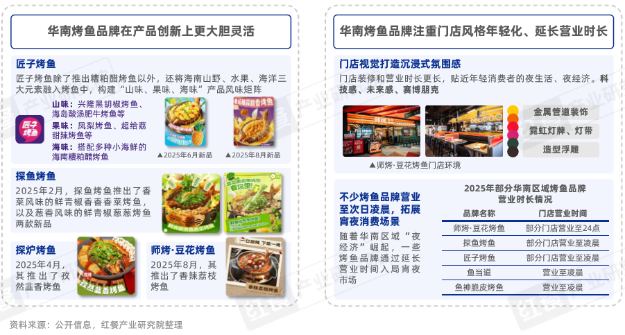 華南品牌通過產(chǎn)品創(chuàng)新與年輕化門店設(shè)計構(gòu)筑優(yōu)勢:產(chǎn)品端嘗試跨界融合、創(chuàng)新調(diào)味;門店端采用夜店風或潮流裝修,覆蓋晚餐及夜宵時段,契合夜經(jīng)濟趨勢。