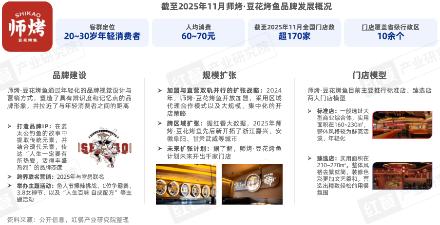 以師烤·豆花烤魚為例,其瞄準“現(xiàn)磨豆花烤魚”細分賽道,聚焦20~30歲年輕客群,憑借差異化定位與年輕化運營快速擴張,截至2025年11月,全國門店超170家,覆蓋10余個省份近40個城市,并布局新加坡等海外市場。