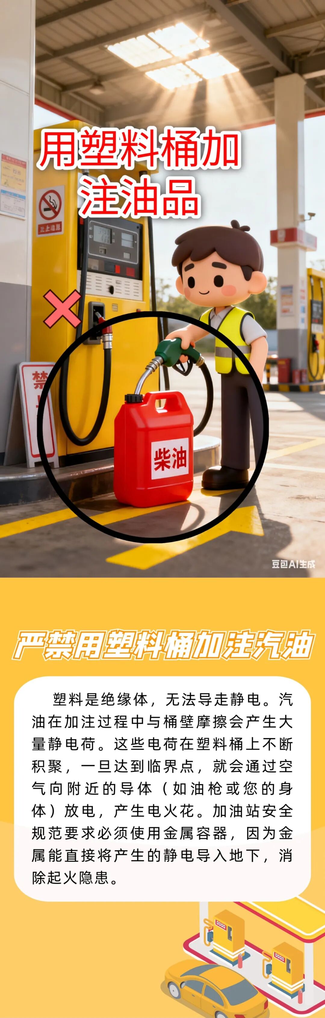 原標題:《【安全提示】嚴禁使用塑料桶加油!叼著煙,打電話……這些行為不可以!》