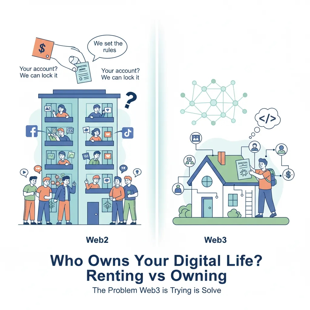 回想一下你每天的數(shù)字生活:你發(fā)布的照片、好友列表、點贊記錄究竟屬于誰?誰真正掌控著你的線上身份?答案其實很簡單,掌控權(quán)掌握在平臺手中。Facebook制定規(guī)則,Google決定你能看到的信息,TikTok的算法左右著什么內(nèi)容會流行。我們就像是住在平臺提供的數(shù)字公寓里,用自己的注意力支付“房租”,卻從未真正擁有其中的任何一部分。
