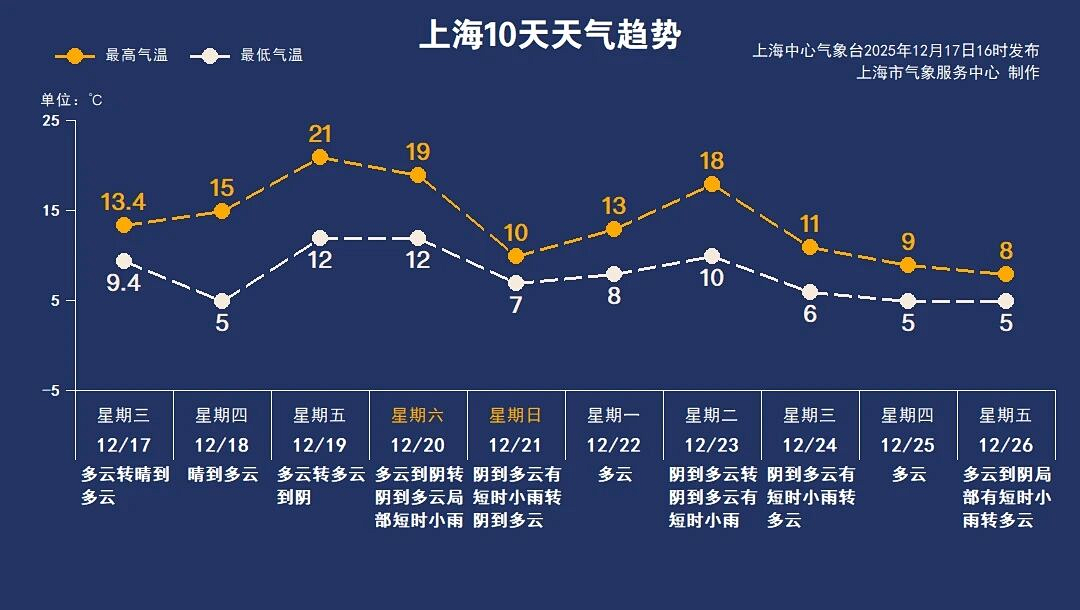 周五受暖濕氣流影響,氣溫繼續(xù)回升,最高將達(dá)20℃以上。周六白天仍有“小陽(yáng)春”般的溫暖,最高約19℃。周六夜間到周日,冷暖空氣交匯引發(fā)短時(shí)小雨,偏北風(fēng)增大,氣溫下跌,周日全天溫度降至10℃以內(nèi),體感明顯變冷。下周初暖濕氣流北抬,氣溫再度回升,下周二最高短暫升至18℃左右。下周三新冷空氣來(lái)襲,又會(huì)帶來(lái)大風(fēng)、降溫和弱降水。未來(lái)十天溫度起伏大,大家需及時(shí)關(guān)注天氣,調(diào)整著裝。
