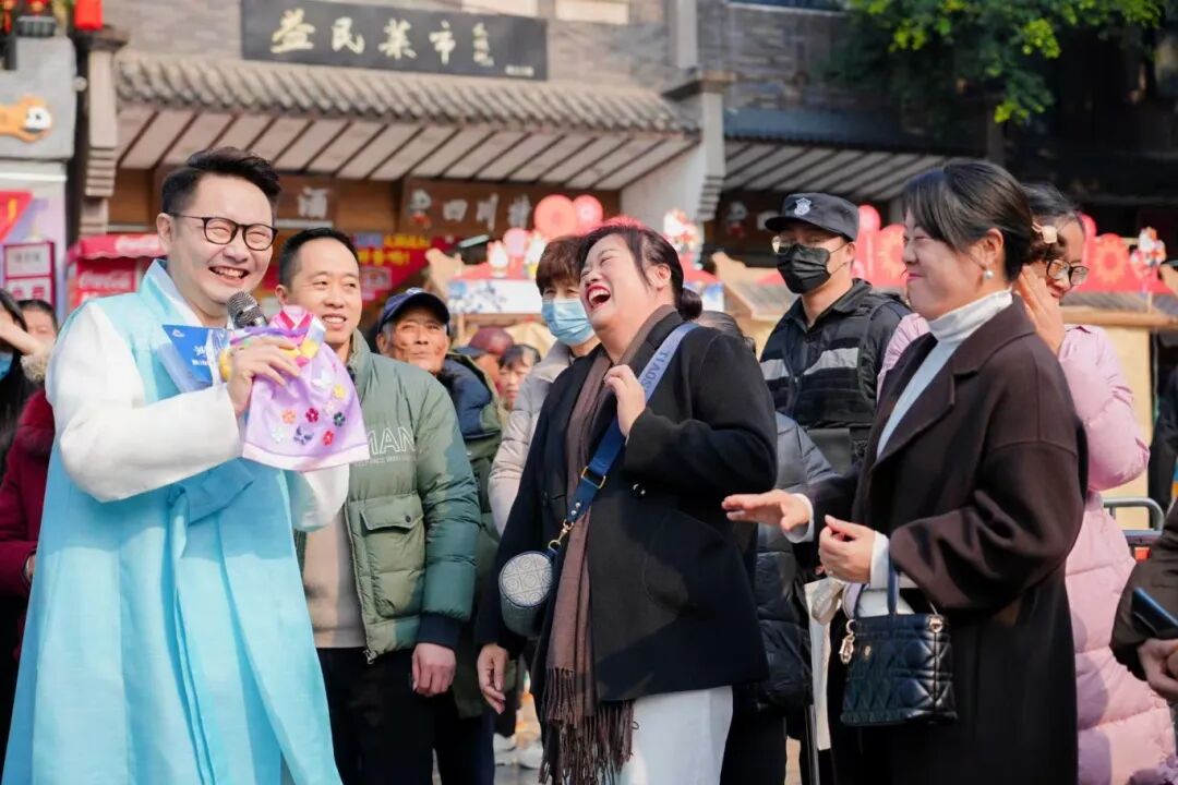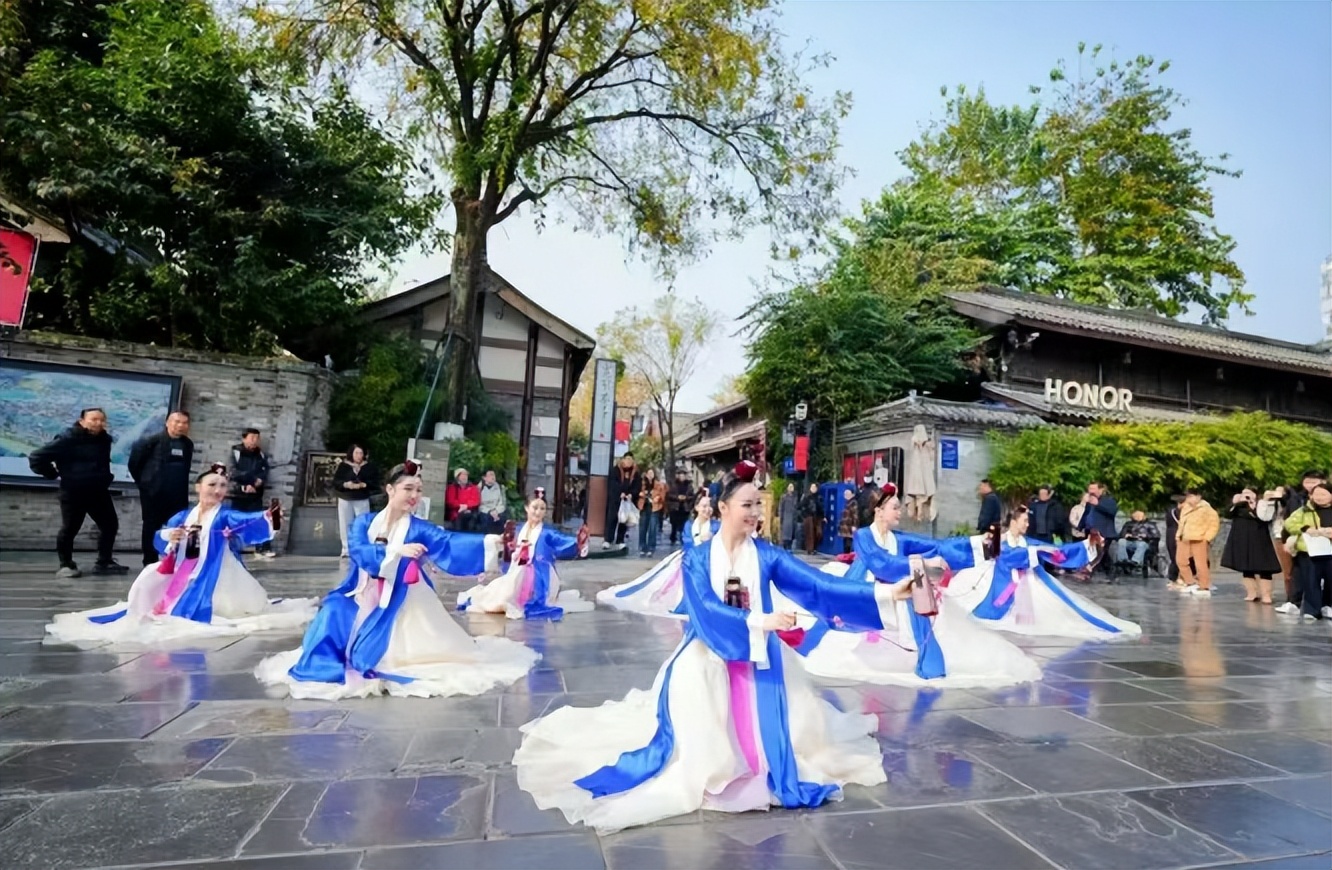 “這朝鮮族舞蹈太震撼了,延邊文旅真有創(chuàng)意!”活動前夕,延邊特色快閃已席卷蓉城核心地標(biāo)。從春熙路的人潮到杜甫草堂的古樸,從人民公園鶴鳴茶社的茶香到寬窄巷子的煙火,身著朝鮮族傳統(tǒng)服飾的表演者帶來靈動歌舞,悠揚旋律與歡快舞步交織,為成都街頭注入北國風(fēng)情,市民紛紛駐足圍觀、拍照打卡,定格延蓉兩地的奇妙聯(lián)結(jié)。