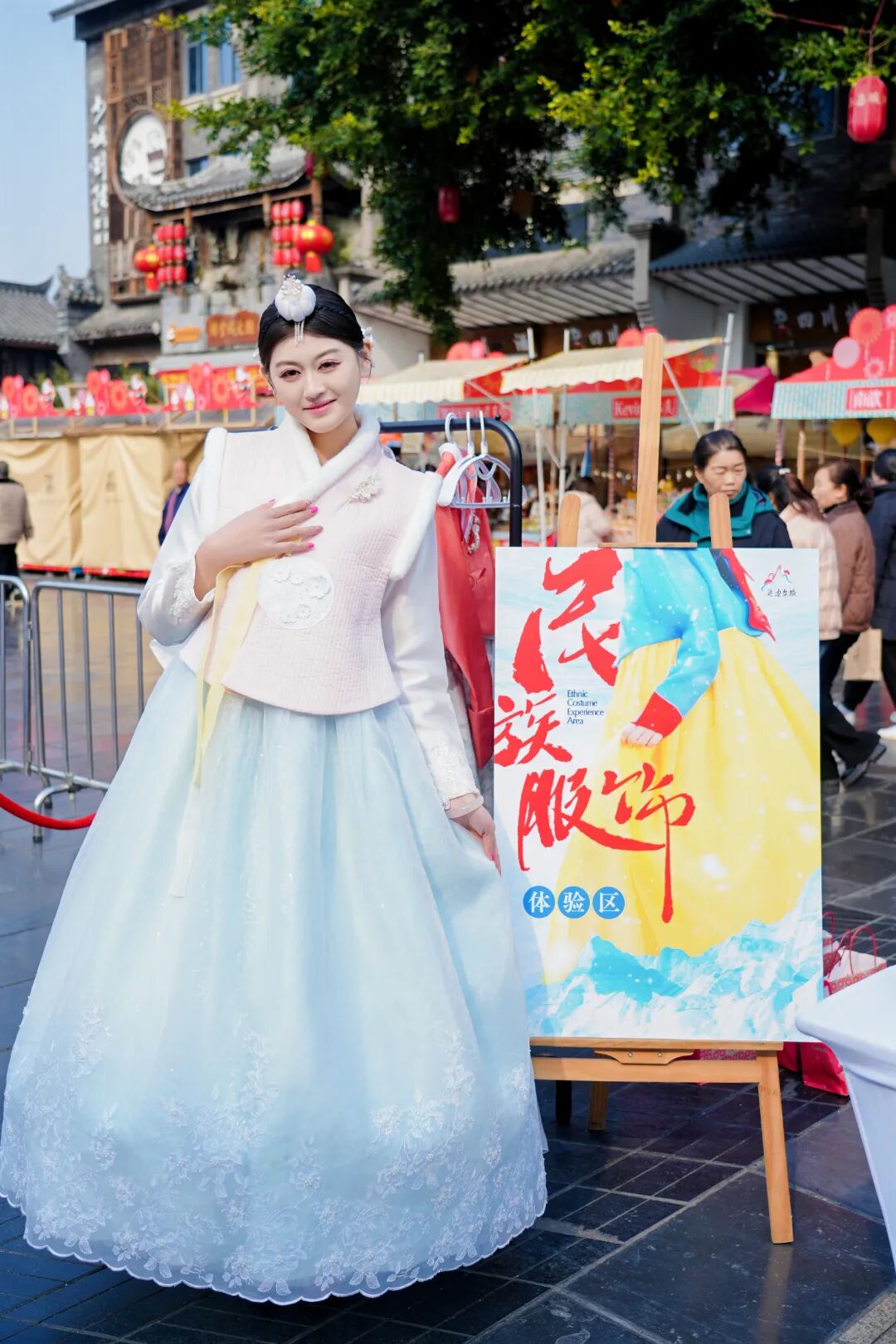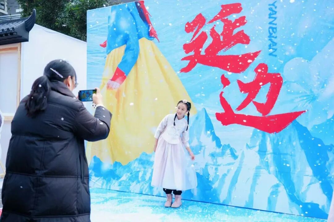 非遺展示、美食品嘗、文創(chuàng)市集等打卡點錯落分布,爆火的“延吉公主”旅拍也空降現(xiàn)場。身著朝鮮族服飾的身影穿梭于雪色木屋間,裙擺與“雪花”共舞,成為動人風(fēng)景。