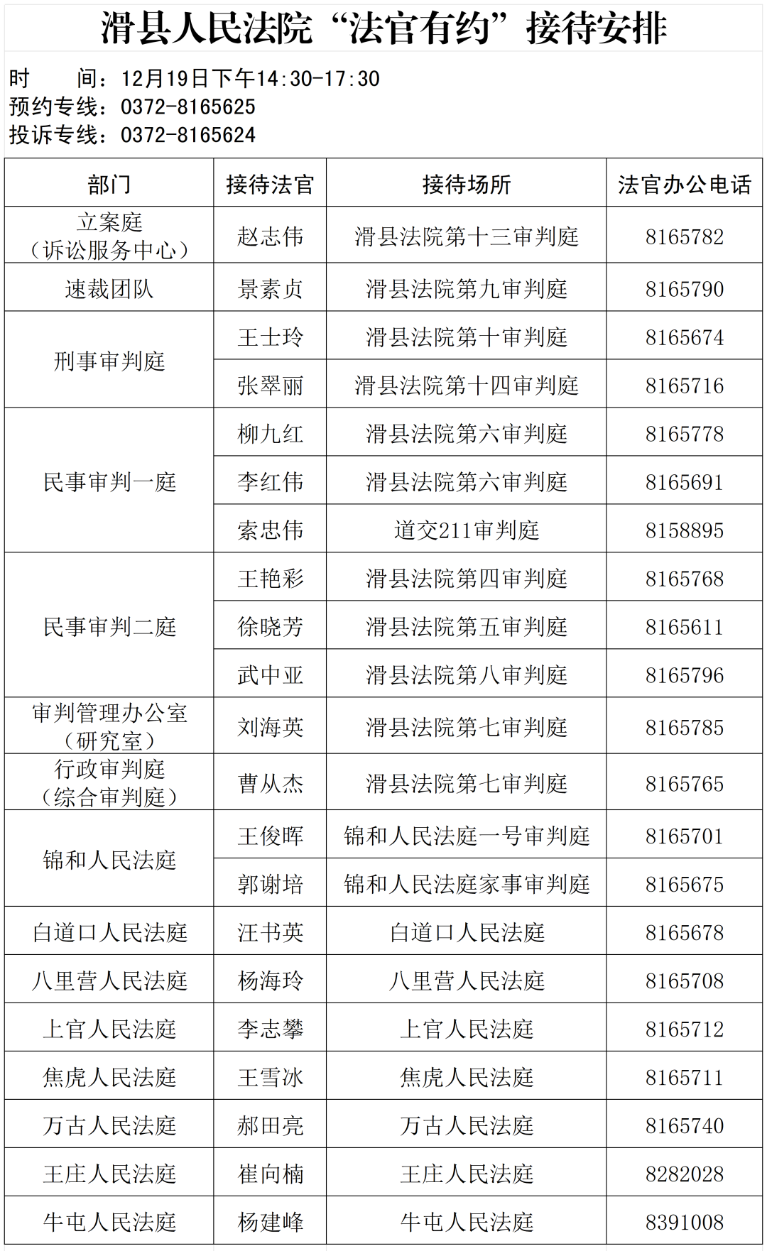 原標(biāo)題:《公告丨滑縣法院“法官有約”固定接待日,時(shí)間、地點(diǎn)看過(guò)來(lái)→》