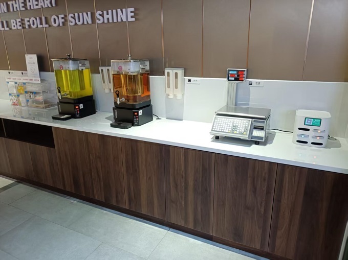 門店設(shè)置顧客休息區(qū),配備洗手臺(tái)、烘手器、直飲水、微波爐、血壓計(jì)等便民設(shè)施,隨季供應(yīng)免費(fèi)茶水;針對特殊需求顧客提供輪椅、雨傘、寵物寄存柜等服務(wù)。