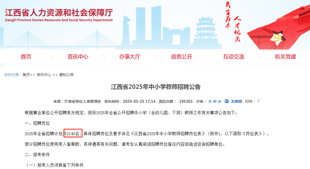 2025年12月15日,江西省教育廳發(fā)布《關(guān)于江西省中小學(xué)教師招聘工作有關(guān)事宜的公告》,就全省中小學(xué)教師招聘相關(guān)安排進(jìn)行了明確。