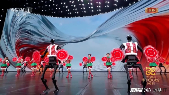 標(biāo)志性事件當(dāng)屬2025年央視蛇年春晚。大幕拉開,16臺身著東北大花襖的人形機(jī)器人與人類舞者共同演繹創(chuàng)意舞蹈《秧BOT》,上演高難度“轉(zhuǎn)手絹”絕活:手絹在指尖飛速旋轉(zhuǎn)而不掉落,隊形變換整齊劃一。
