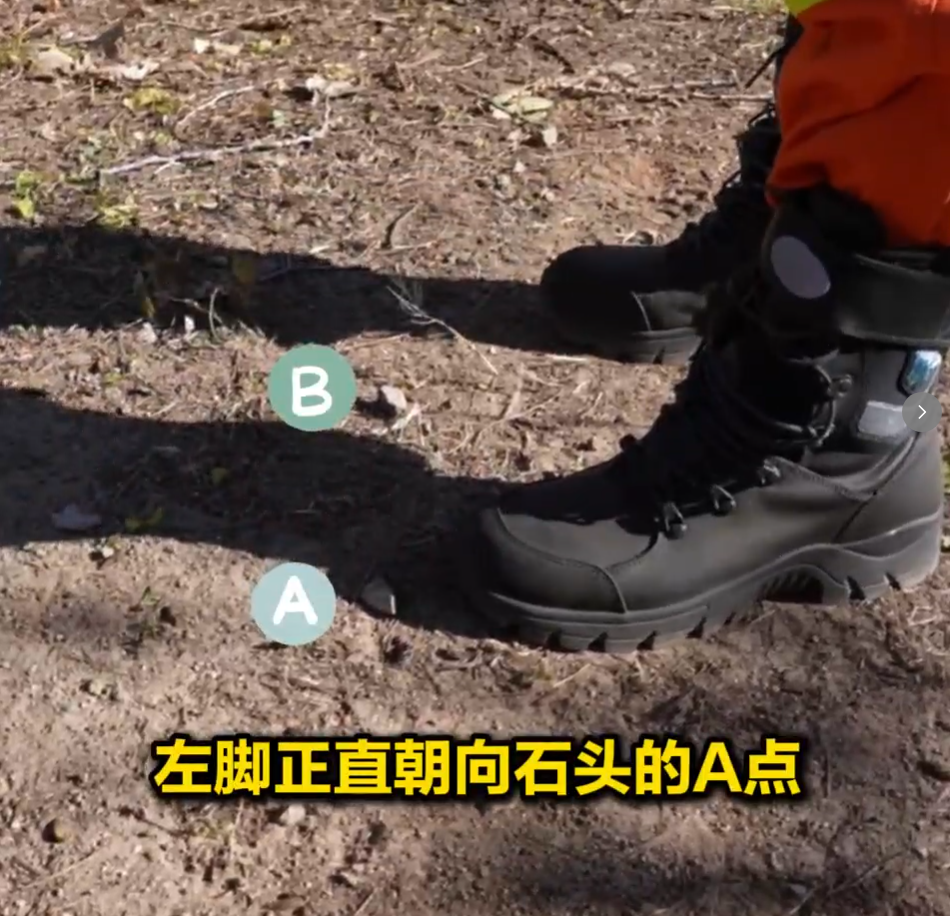 背對(duì)樹枝,左腳對(duì)著A點(diǎn),右腳對(duì)著B點(diǎn),正前方就是北方。