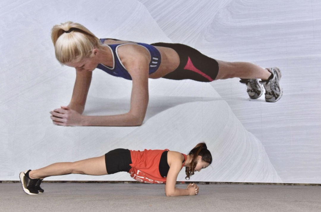手臂彎曲撐地,頭、腰、腳后跟呈一條直線,最好在瑜伽墊上進(jìn)行。時間可根據(jù)自身耐力逐漸增加。