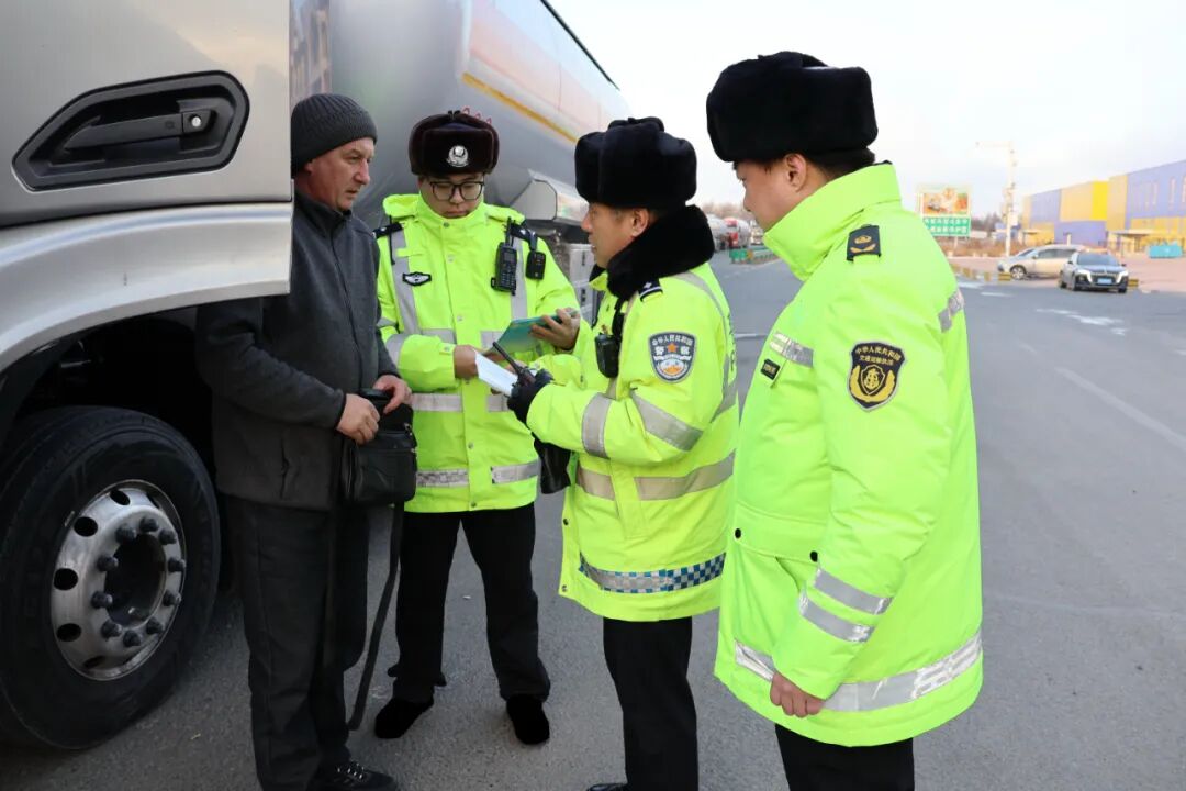 針對(duì)外籍車(chē)輛通關(guān)流量大的實(shí)際情況,交管大隊(duì)聯(lián)合市交通運(yùn)輸局構(gòu)建聯(lián)勤協(xié)作機(jī)制,實(shí)現(xiàn)信息互通共享,開(kāi)展聯(lián)合巡查行動(dòng),共同引導(dǎo)車(chē)輛有序通行。同時(shí),通過(guò)“源頭把控+路面巡檢”相結(jié)合的模式,全面排查車(chē)輛安全隱患,切實(shí)做好外籍車(chē)輛及駕駛?cè)说脑搭^監(jiān)管工作。