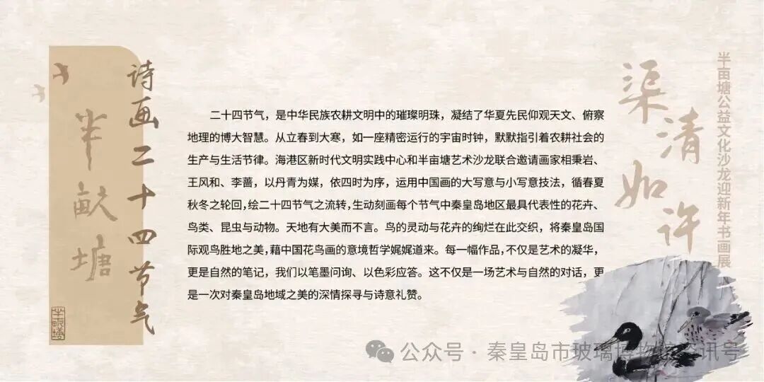 歲末交替之際,一場融合審美意趣與文化底蘊(yùn)的藝術(shù)盛宴即將拉開帷幕——“渠清如許”半畝塘公益文化沙龍迎新年書畫展,定于2025年12月20日至12月29日在秦皇島市玻璃博物館南展廳舉辦,誠邀市民朋友們共赴這場文化之約,領(lǐng)略筆墨間的獨特風(fēng)華。