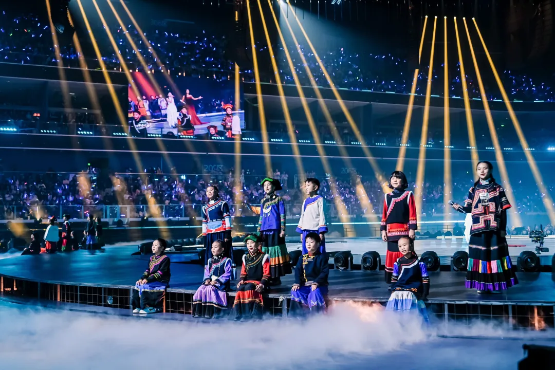 活動(dòng)現(xiàn)場(chǎng),4000臺(tái)燈光如星河般閃爍,80組機(jī)械裝置與360組單點(diǎn)數(shù)控系統(tǒng)精密配合,升降矩陣、威亞數(shù)控與全息影像相互映襯,構(gòu)建出層次豐富的立體空間,244束光隨節(jié)奏律動(dòng),為觀眾帶來(lái)沉浸式的感官體驗(yàn)。