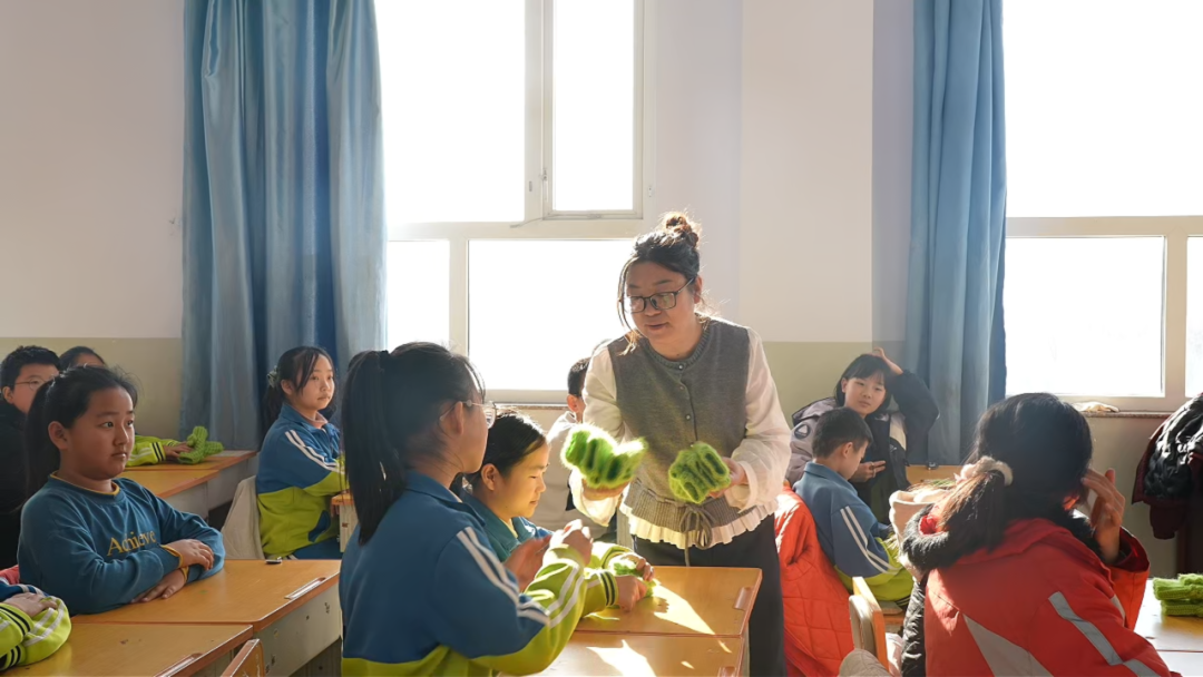 冬日的陽光透過窗欞,灑滿萬全城關小學五年級一班的教室。30余名學生整齊捧著嶄新的綠色鉤織手套,指尖摩挲細密針腳,臉上洋溢著藏不住的喜悅。這驅散寒意的“暖心綠”,出自班主任顧玉琴之手,一針一線串聯師者仁心,織就滿溢的冬日溫情。