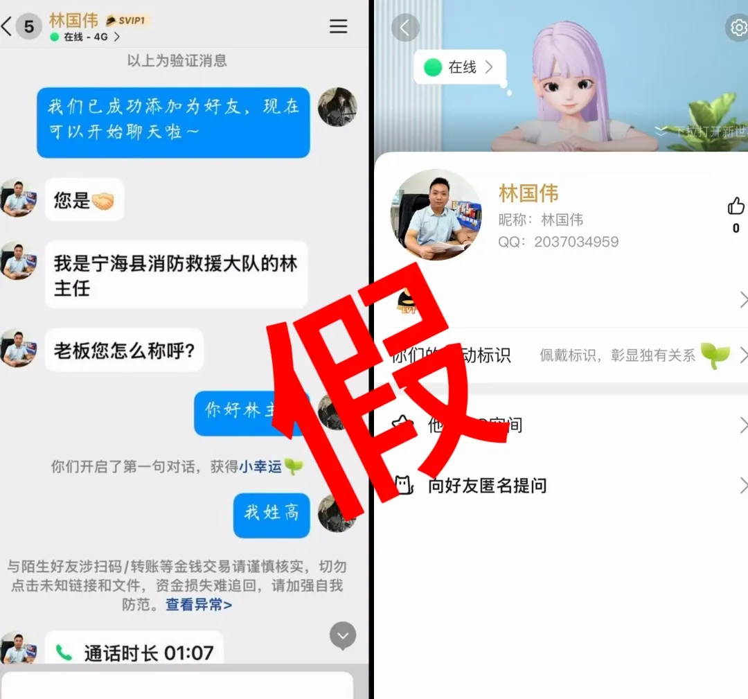 好在高先生察覺到異常,及時向?qū)幒?h消防救援大隊核實。經(jīng)消防員確認(rèn),隊里根本沒有所謂的“林主任”。