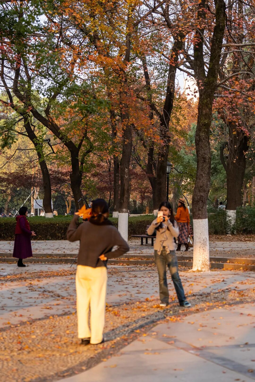 踩在金黃的落葉上