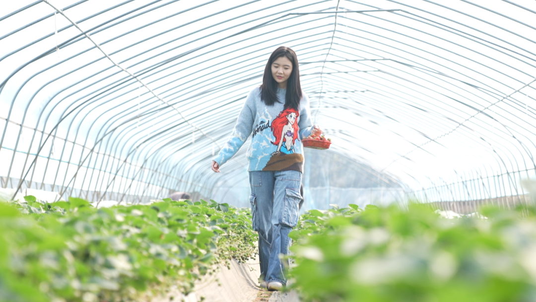站在草莓壟間