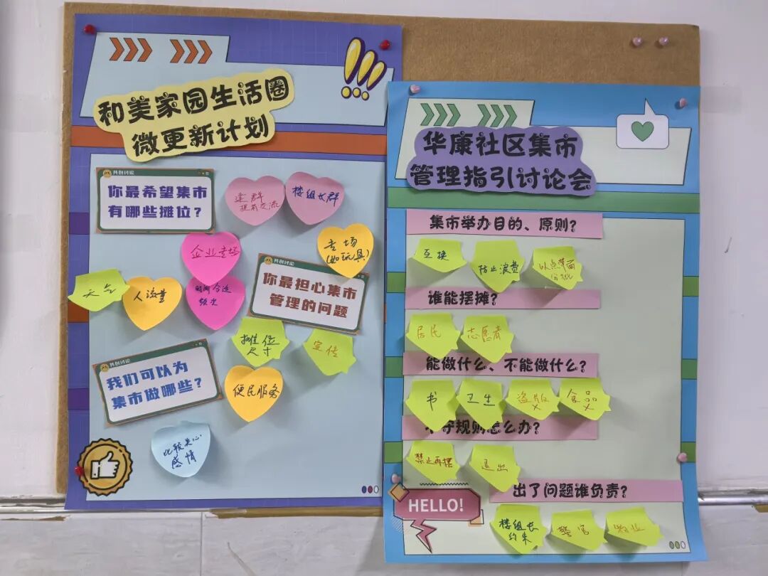 為暢通居民參與渠道,華康居民區(qū)設立“社區(qū)議事廳”。鄰里市集的想法源于走訪中居民提出的“促進交流、盤活閑置資源”需求,經(jīng)議事廳提議催生。