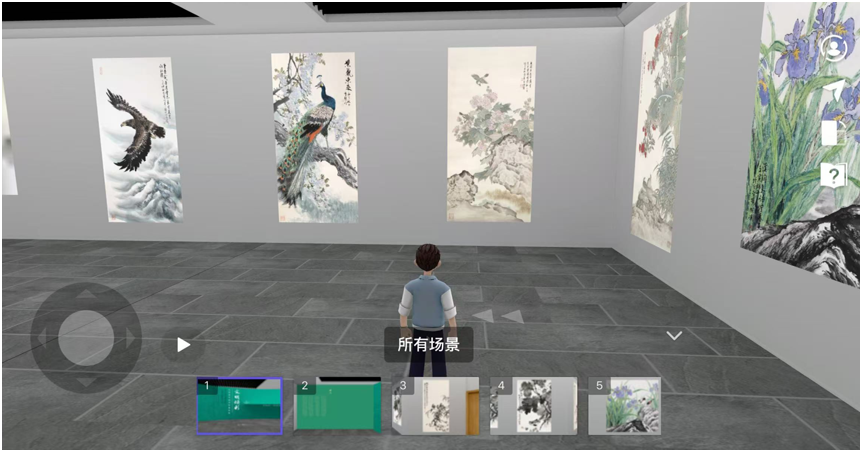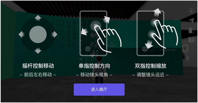 跟隨地面的漫游指引箭頭,通過(guò)操控左側(cè)搖桿前進(jìn)瀏覽