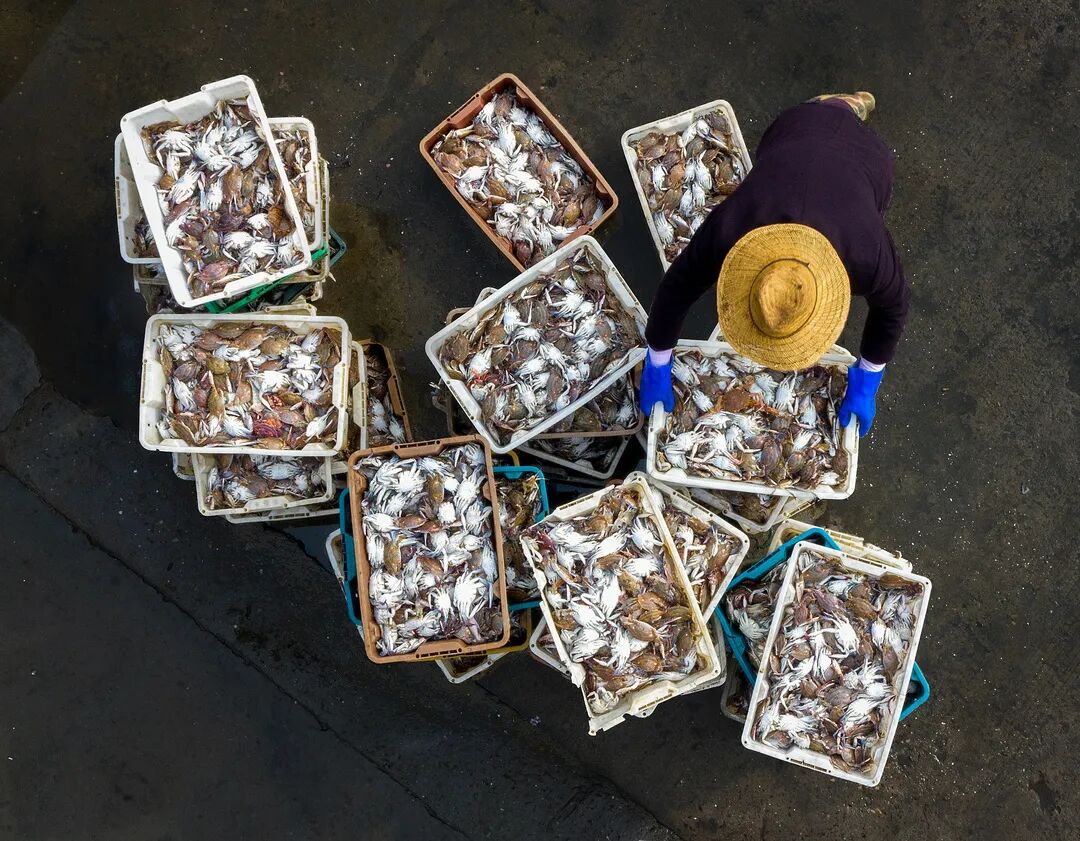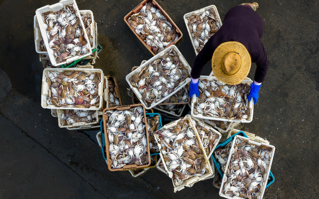 東沙村的“蟹公寓”用智能系統(tǒng)控溫供氧,海水循環(huán)流動,冬季蟹存活率超90%,實現(xiàn)四季養(yǎng)蟹、全年供應(yīng)。這里的梭子蟹肥大膏腴,印證“殼凸紅脂塊塊香”的詩意。