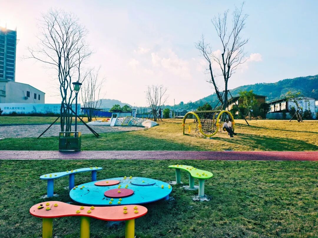 公園內(nèi)配備了多樣的健身器材和兒童游樂設(shè)施,滿足不同年齡段居民的日常健身需求。公園及周邊濱水景觀帶融入了當(dāng)?shù)匚幕?,展現(xiàn)出珊溪鎮(zhèn)作為水利重鎮(zhèn)和地方中心的文化特色。