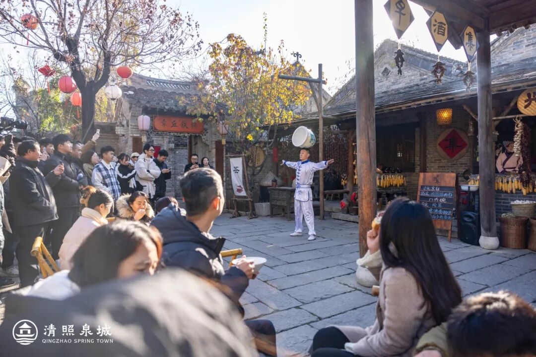 冬日清晨寒意襲人,清照泉城·明水古城的煙火氣卻悄悄將寒冷驅(qū)散。酒茶剛煮沸,爐火正燒得旺,趕一場早酒集,成了老濟(jì)南人過冬最硬核的打開方式。