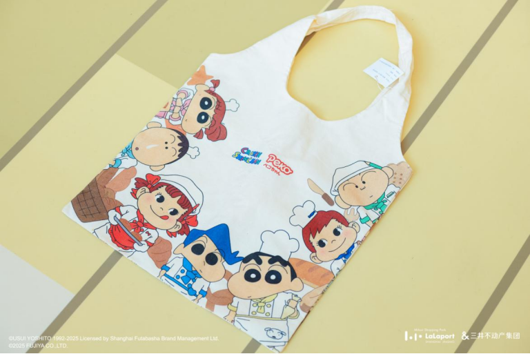 開業(yè)首日,蠟筆小新與PEKO人偶將驚喜現(xiàn)身互動;12月20-21日還會現(xiàn)場派發(fā)糖果,傳遞雙倍甜暖能量。快閃期間(至2026年2月28日)推出毛絨玩偶、帆布包、紅包袋等聯(lián)名周邊,滿足粉絲收藏需求。