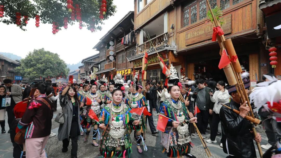 侗寨內(nèi)人潮涌動