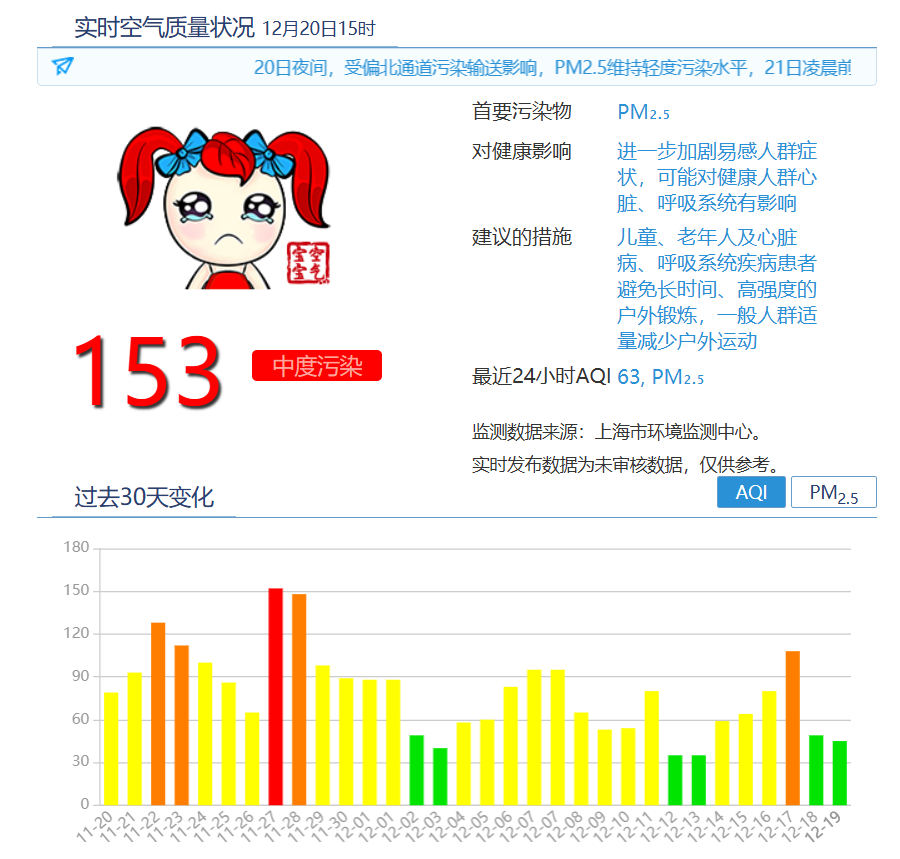 昨日午后冷空氣已抵,標(biāo)志性的“大風(fēng)+降溫”組合同步上線。氣溫如遇“滿減”,體感溫差顯著,同時(shí)還出現(xiàn)中度污染,空氣污染指數(shù)達(dá)153,天空被灰蒙蒙籠罩。