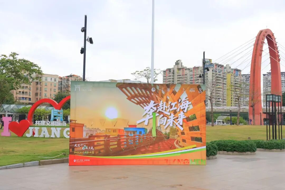 賽事開始前,江海區(qū)的大街小巷就已換上“江馬盛裝”。從各個氛圍點的主題海報,到主干道兩側(cè)懸掛的鮮艷彩旗,再到下沙公園、釜山公園等點位的精心布置,處處都洋溢著熱烈的賽事氛圍,讓跑者還未開賽就感受到“家”一般的溫暖。