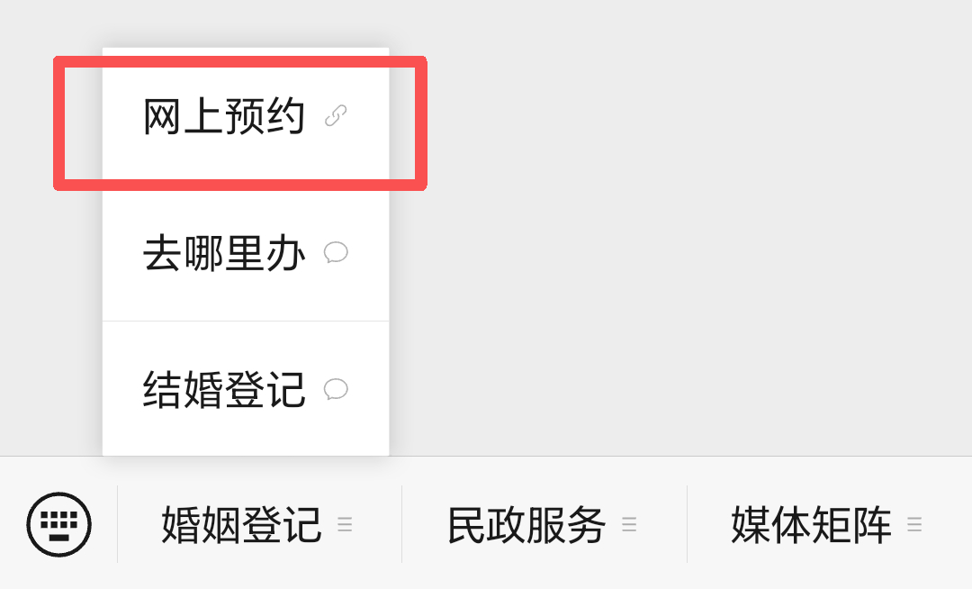 在公眾號中找到“婚姻登記”菜單欄