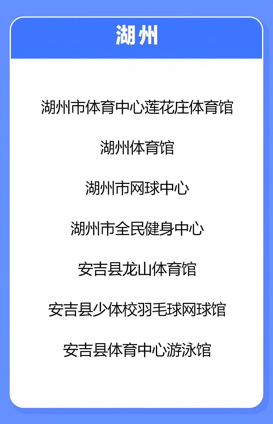 湖州有多家體育場(chǎng)館成功入選
