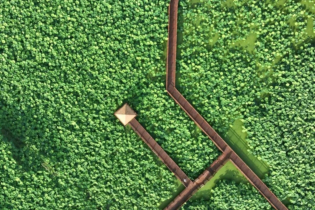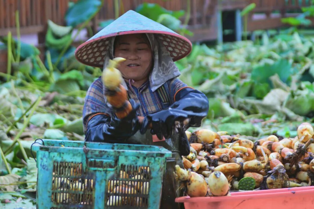 在紅星村的荷塘邊,她定格過挖藕人舉起蓮藕時樸實的笑臉;在榮星村的稻田里,她記錄下無人機春日播撒希望的現(xiàn)代畫面。她的鏡頭里,既有自然風(fēng)光,更有人間煙火。
