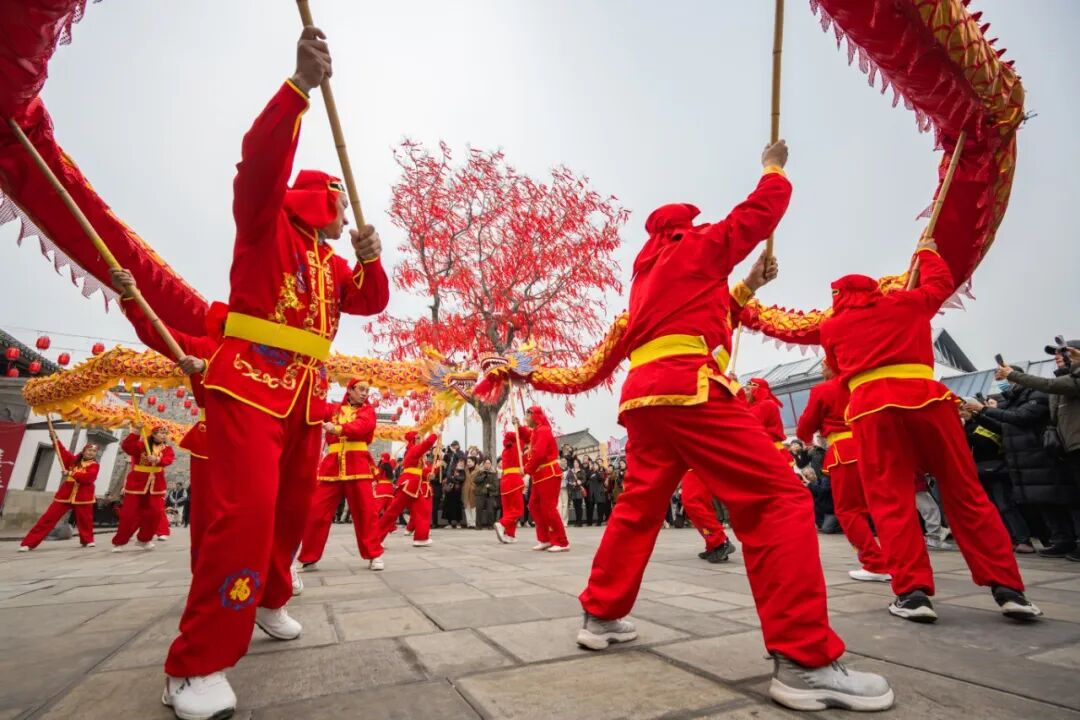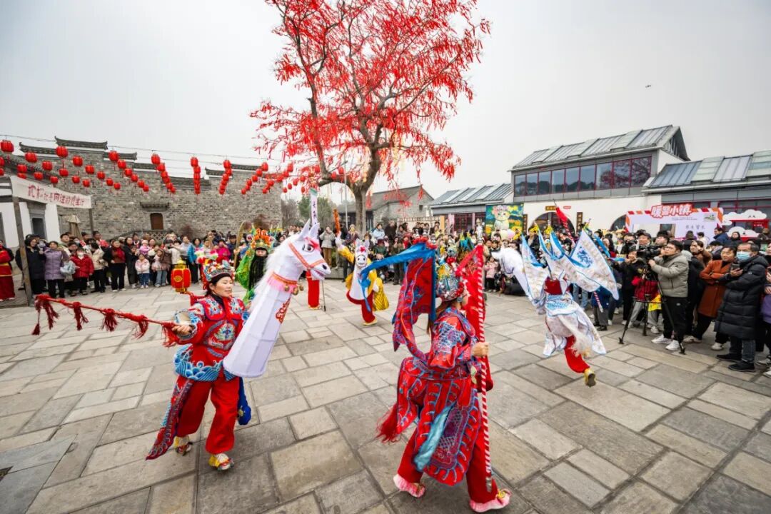 靈動矯健的舞龍表演十分吸睛,表演者們步伐輕快,龍身在空中騰躍翻飛,紅綢隨風飄動,贏得陣陣掌聲;省級非遺項目大馬燈的馬形道具栩栩如生,表演者們配合默契,每一個動作都透著古樸喜慶的韻味,把平安順遂的新年祝福送給每位游客。