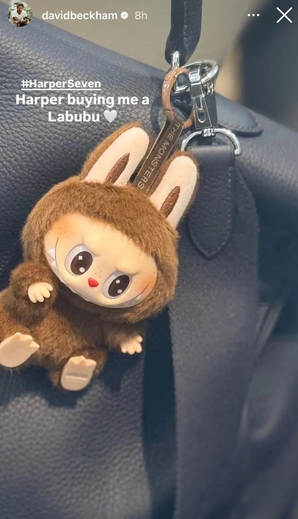 貝克漢姆曬LABUBU。(圖/社交媒體截圖)