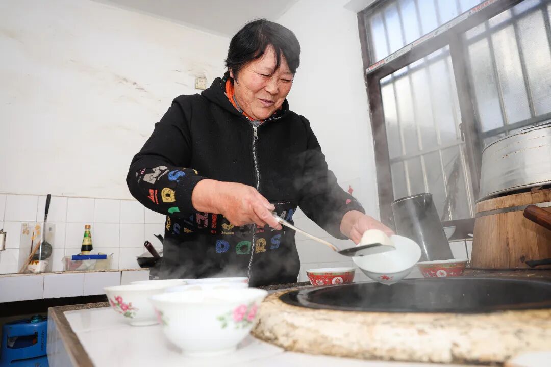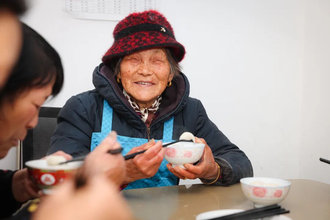 “圍在一起吃熱鬧開心,吃不完分給鄰居或帶回家。湯圓又糯又鮮,冬天就愛這口!”八旬村民楊阿婆笑著說。